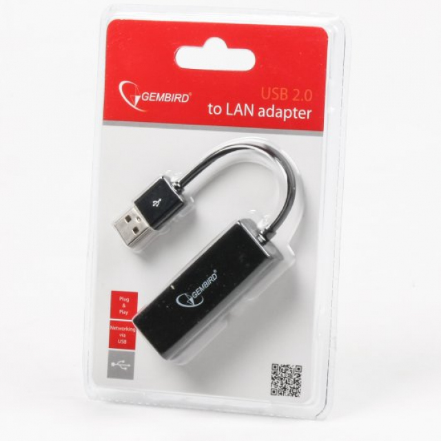 Gembird NIC-U2-02, USB2.0 LAN adapter, USB2.0 to RJ-45 LAN connector