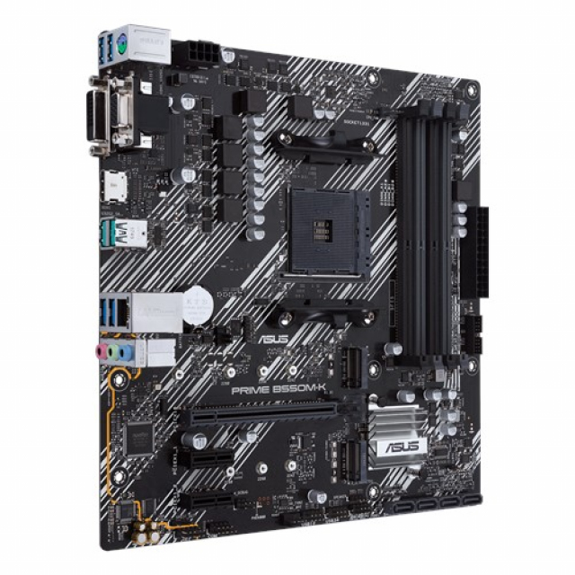 ASUS PRIME B550M-K, Socket AM4, AMD B550, Dual 4xDDR4-4600, APU AMD graphics, VGA, DVI, HDMI, 1xPCIeX16 4.0, 4xSATA3, 2xPCIeX1, RAID, 2xM.2 4.0 slot, ALC887 HDA, 1xGbE LAN, 2xUSB3.2 Gen 2, 6xUSB3.2, mATX