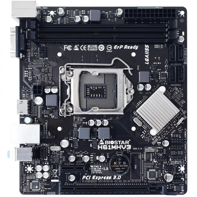 BIOSTAR H61MHV3, Socket 1155, Intel H61, Dual 2xDDR3-1600, CPU Intel graphics, VGA, HDMI, 1xPCI-E x16 3.0, 4xSATA2, 1xPCIe X1, Realtek ALC897 7-Ch HD Audio, Realtek RTL8111H GigaLAN, 4xUSB 2.0, mATX