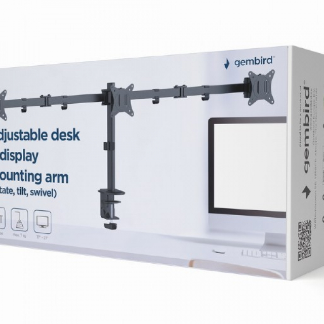 Arm for 3 monitors 17”-27” Gembird MA-D3-01, Adjustable desk 3-display mounting arm (rotate, tilt, swivel), up to 7 kg, VESA 75/100, black
