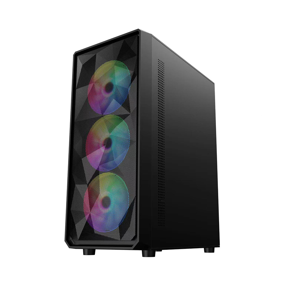 Case 1STPLAYER FD3 BLACK, ATX w/o PSU, Tempered Glass Side Panel, Front Panel: Metall Mesh, F5S RGB fan (3front), F5M RGB fan (1rear), no hub and controller, 3.5' HDD*1/2.5” SSD*1, USB3.0*1, USB2.0*2, HD AUDIO, SPCC 0.45mm, Black