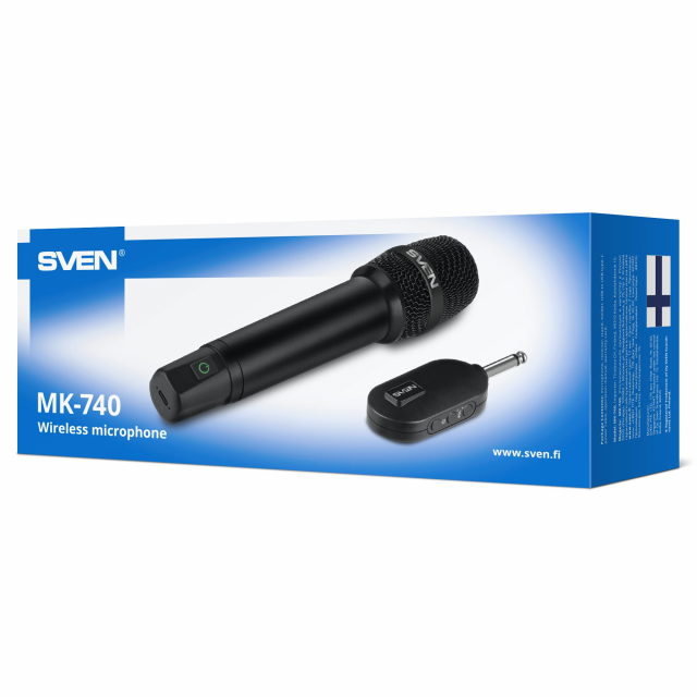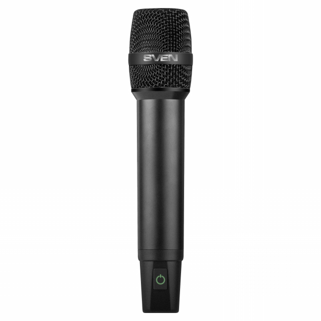 SVEN MK-740, wireless dynamic microphone, Li-Ion 180mAh, 2.4GHz radio / 6.3 mm plug, up to 25 m distance, up to 12 hours, pop filter, black