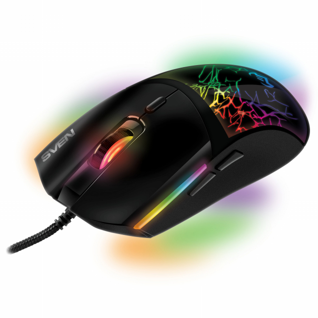 SVEN RX-G995 Programmable gaming mouse, 1000 - 16000 dpi, Programmable 5+1 buttons (scroll wheel), Gaming Sensor Pixart 3389, Customizable RGB backlightt, Durable braided cable, USB, 1.8m, Black