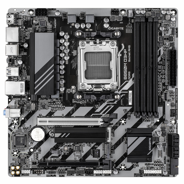 GIGABYTE B850M D3HP, Socket AM5, 9Phases, AMD B850, Dual 4xDDR5-8200, APU AMD graphics, HDMI, 2xDP, 2xPCIe5.0 X16, 4xSATA3, RAID, 2xM.2 PCIe 5.0, Realtek 7.1 HDA, 1x2.5GbE LAN, 2xUSB-C 3.2, 5xUSB3.2, RGB Fusion 2.0, mATX