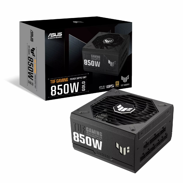 PSU ASUS TUF GAMING 850G, 850W, ATX12V V3.1, 80 PLUS® Gold, Full Modular, Protective PCB coating, Military-grade comp, 0db Technology, Dual-ball 120mm Axial-tech Fan with PWM, +12V (70.8A), 20+4 Pin, 2xCPU(4+4Pin), 5x SATA, 3xPCI-E(6+2pin), 4x Peripheral, 1x 16-pin PCIe, Black