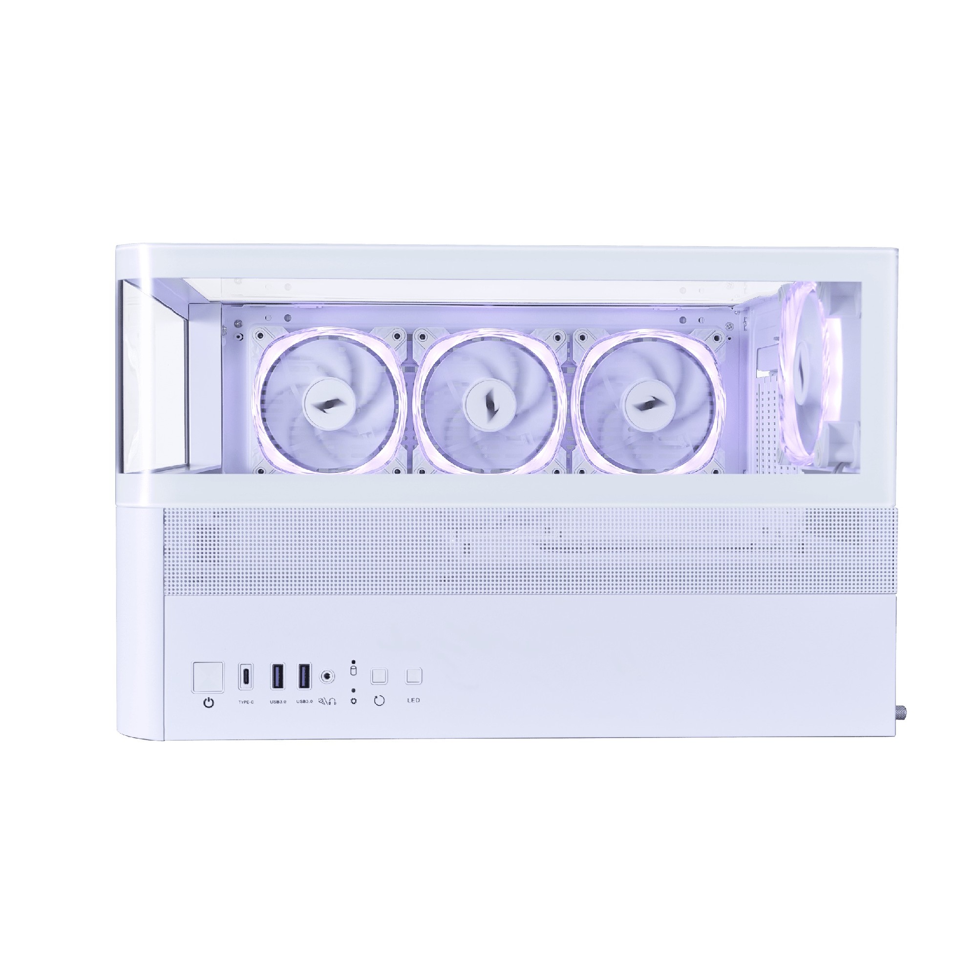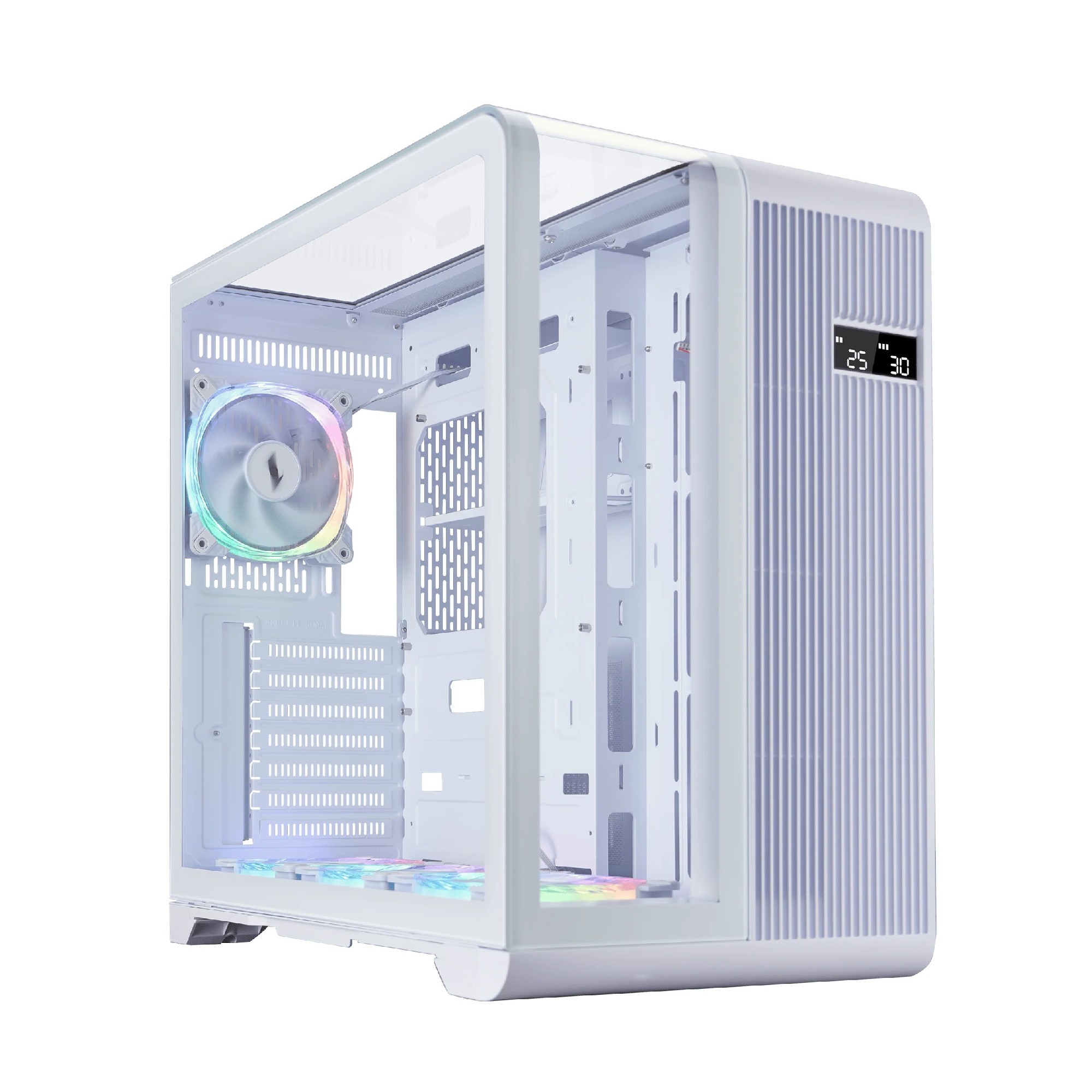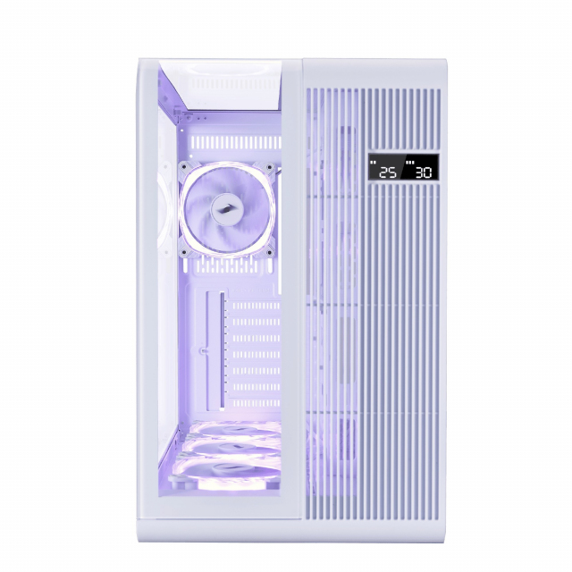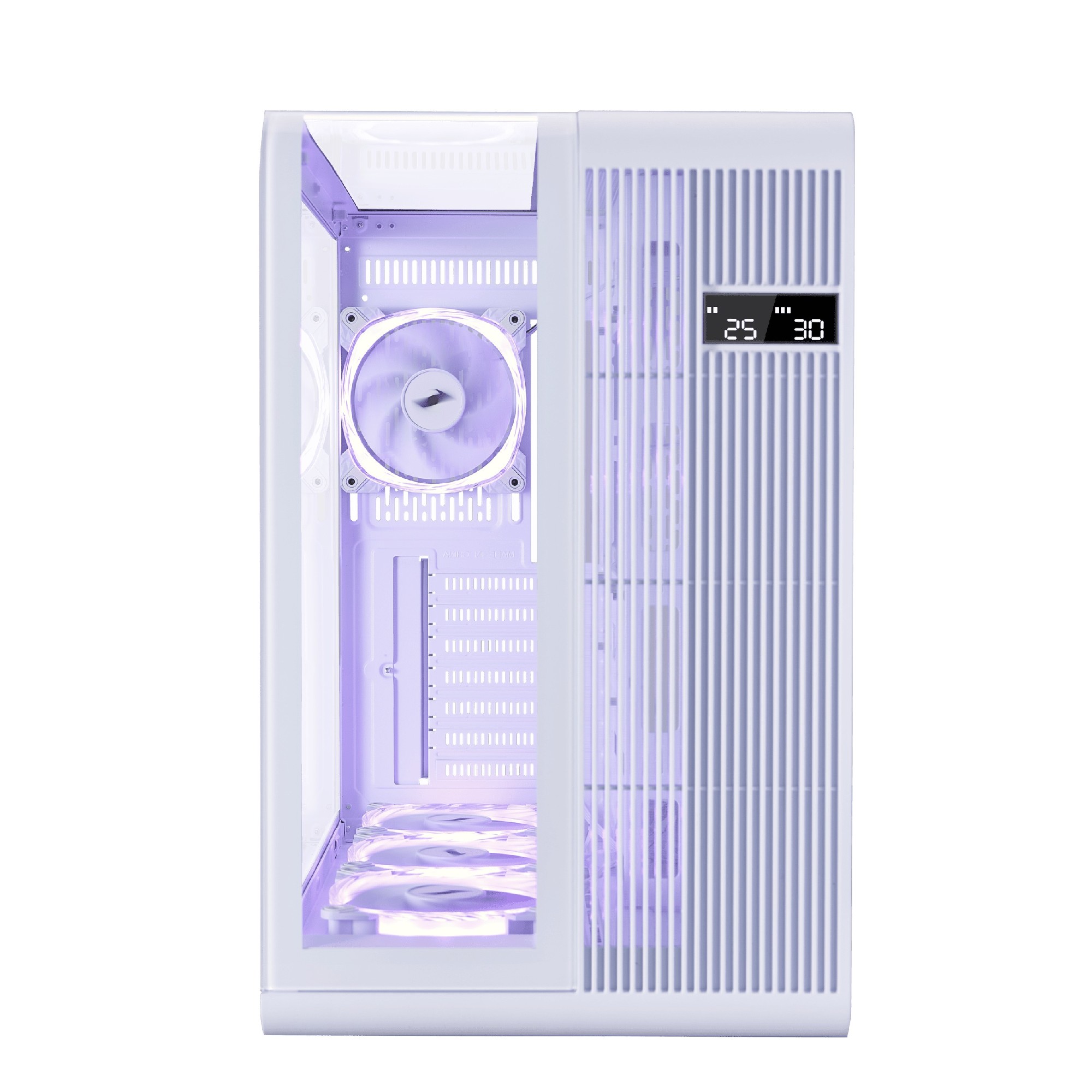 Case 1STPLAYER RT7 WHITE, ATX w/o PSU, Tempered glass on three sides, LED display monitors CPU/RAM/Temp, FC7R-W ARGB fan (3xBottom), FC7-W(1xRear), MB Synchro, 2.5” SSD*3 / 3.5” HDD*2, 1xType-C, 1xUSB3.0, HD AUDIO, Support 360mm Front, SPCC 0.6mm, White