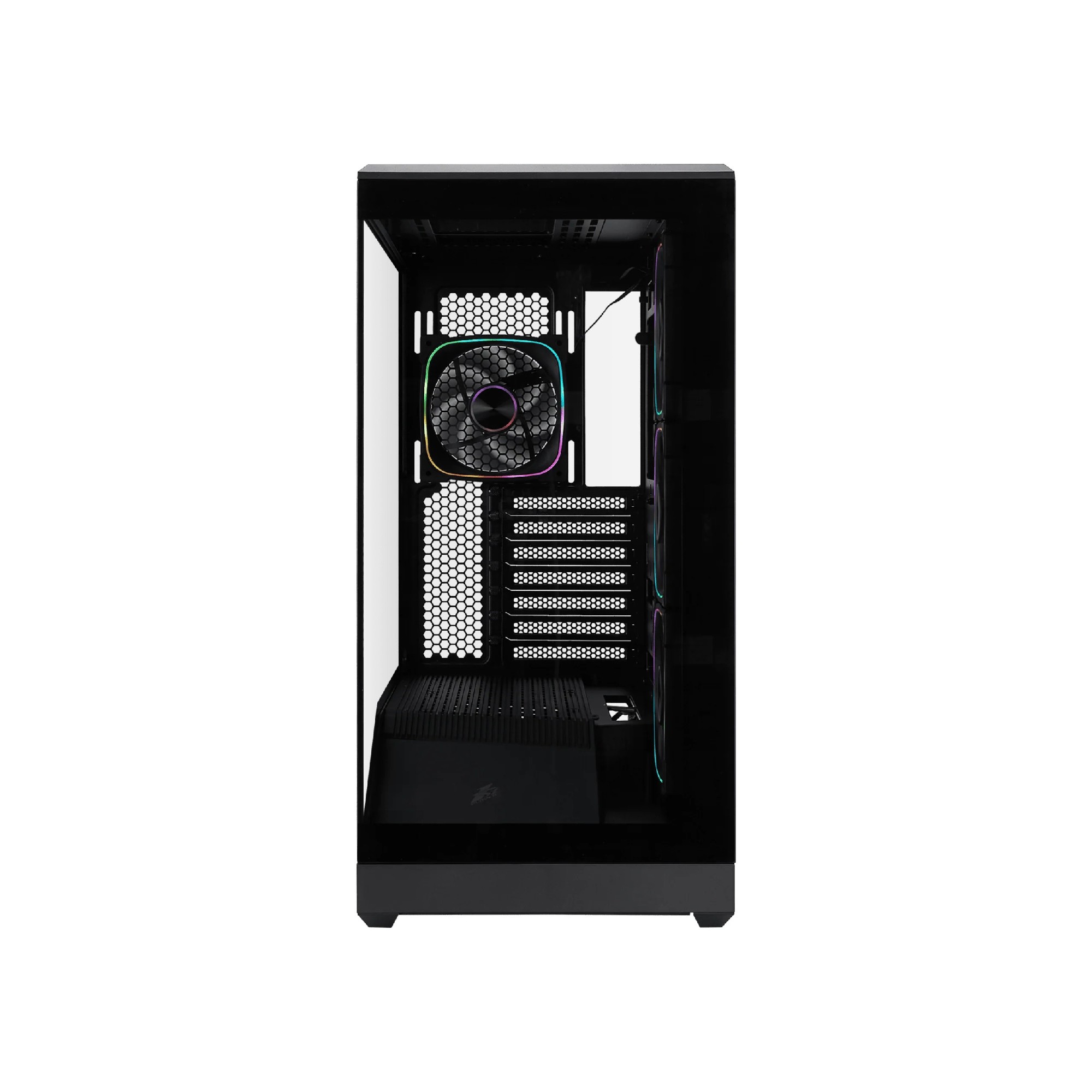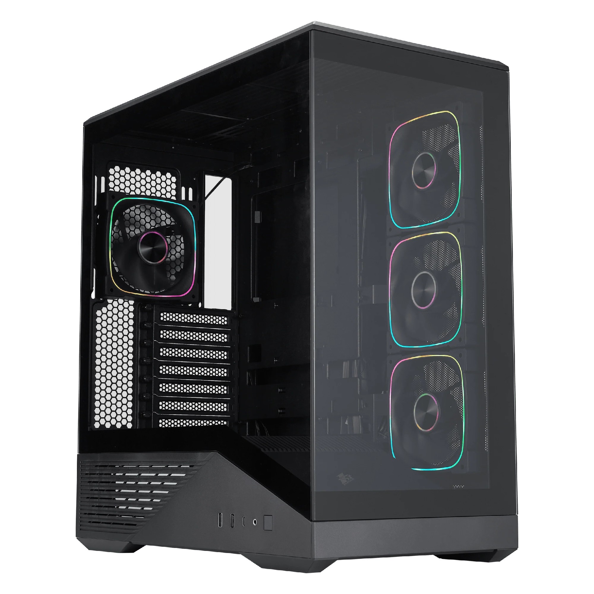 Case 1STPLAYER GM7 BLACK, ATX w/o PSU, 270 wide-angle TG, Distinctive Angular Geometry, Supports BTF MBs, FN7R ARGB fan (3xFront), FN7 ARGB fan (1xRear), MB Synchro, 3.5” HDD:1, 2.5” SSD:1, 1xUSB-C, 2xUSB3.0, HD AUDIO, Support 360 mm Liquid Cooling, SPCC 0.7mm, Black