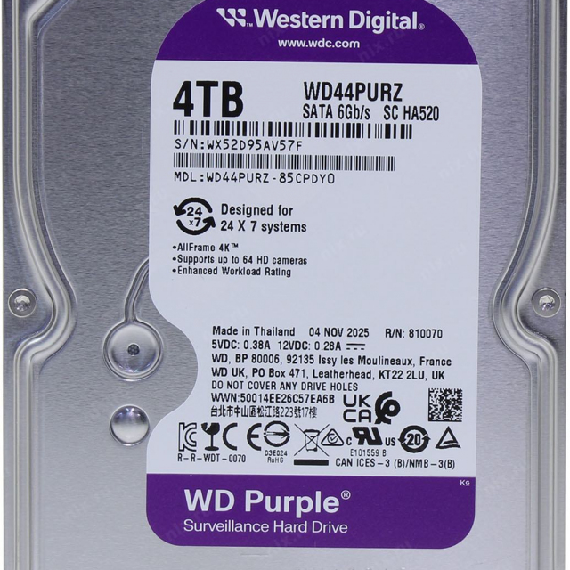 3.5” HDD 4.0TB Western Digital WD44PURZ Caviar® Purple™, CMR Drive, IntelliPower, 128MB, SATAIII