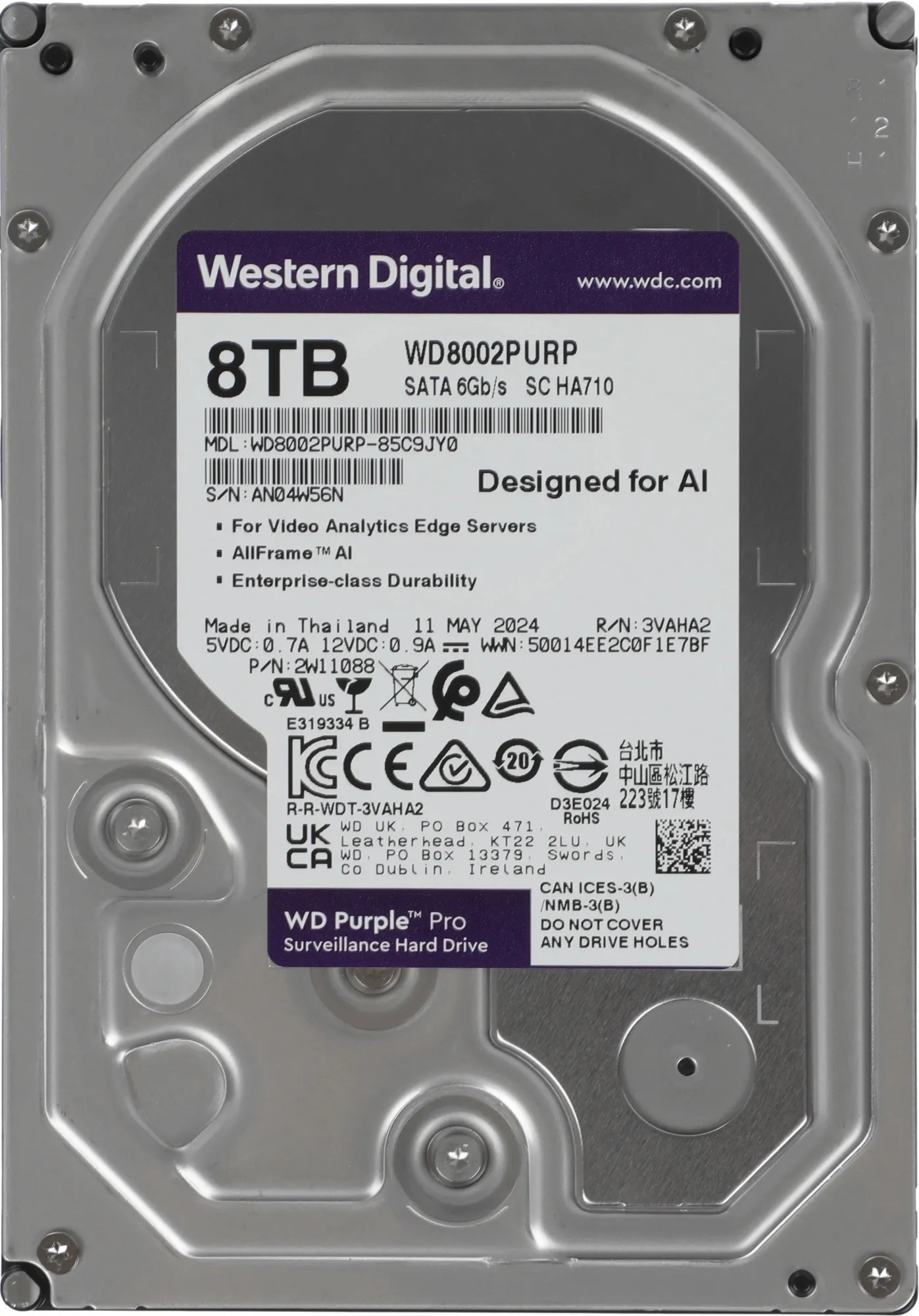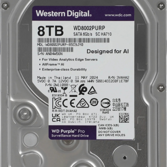 3.5” HDD 8.0TB Western Digital WD8002PURP Caviar® Purple™ PRO, CMR Drive, 7200rpm, 256MB, 24x7, SATAIII