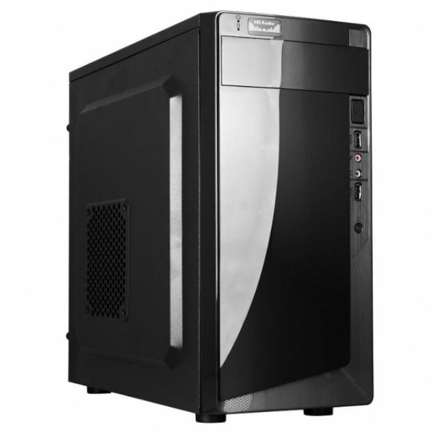 HPC D-03 mATX Case, with PSU (500W, 24 pin, 1x 4pin, 2xSATA, 2xIDE, 1x FDD, 12cm fan), 2xUSB2.0 / HD Audio, Black