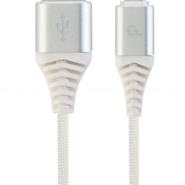 Cable USB2.0/Micro-USB Premium cotton braided - 2m - Cablexpert CC-USB2B-AMmBM-2M-BW2, Silver/White, USB 2.0 A-plug to Micro-USB plug, blister
