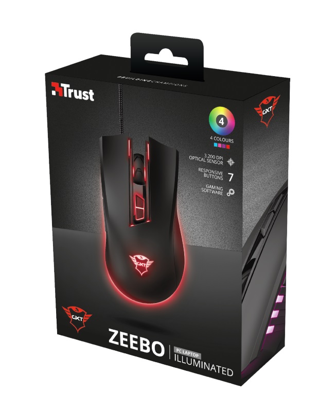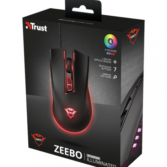 Trust GXT 121 Zeebo,1200 - 3200 dpi, adjustable LED lighting, 7 Programmable button, 1,8 m USB, Black