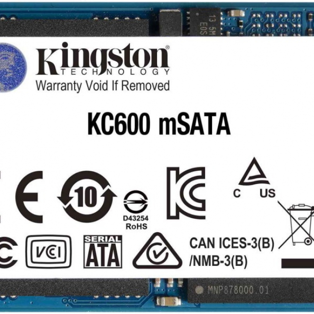 mSATA SSD 256GB Kingston KC600, SATAIII,SeqReads:550 MB/s,SeqWrites:500 MB/s, Max Random 4k Read: 90000 IOPS/ Write: 80000 IOPS, 7mm, Controller SM2259, XTS-AES 256-bit encryption, 3D NAND TLC