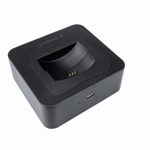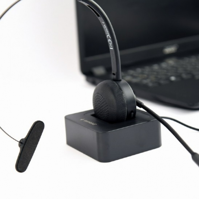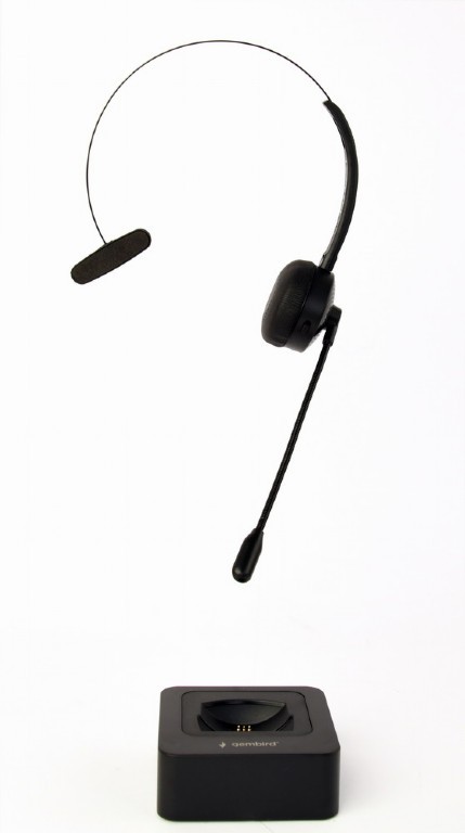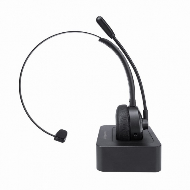 Gembird BTHS-M-01 Bluetooth call center headset with built-in microphone, mono, Bluetooth v5.0, LED, up to 12 hours on a single charge, distance: up to 10 m, Headset battery: 150 mAh Li-Polymer (charging up to 1.5 h), Charging base: 500 mAh Li battery, USB Type-C charging port, 173g, black