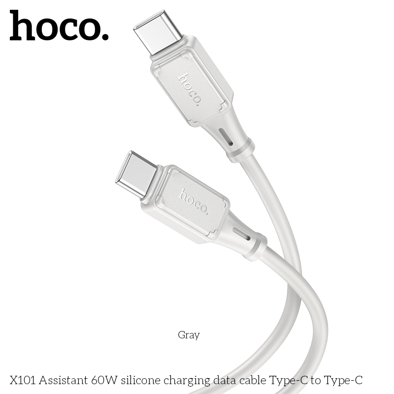 Cable USB-C to USB-C HOCO “X101 Assistant”, Silicone, 1m, Gray, up to 3A, laptop 60W fast charging, Charging Data Cable, Outer material: Silicone