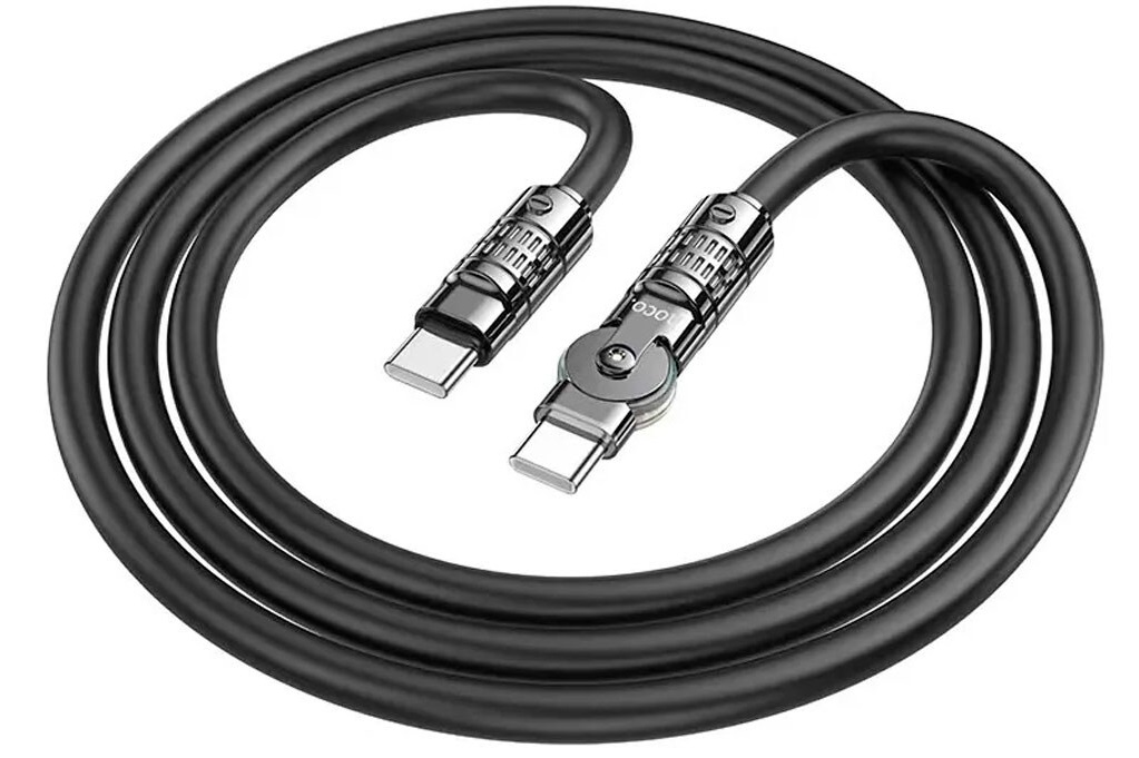 Cable USB-C to USB-C HOCO “U118 Triumph”, 1.2m, Black, Rotating Charging Data Cable, Laptop 60W (20V/3A) charging, up to 60W, up to 3A, Outer material: Zinc alloy
