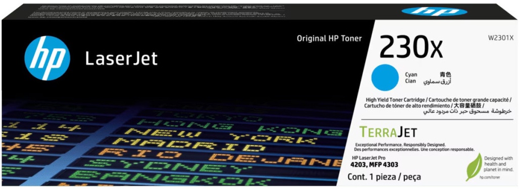 HP 230X Cyan Toner 5,500 pages for HP Color LaserJet Pro 4203dn, HP Color LaserJet Pro 4203dw, HP LaserJet Pro MFP 4303dw, HP LaserJet Pro MFP 4303fdn, HP LaserJet Pro MFP 4303fdw