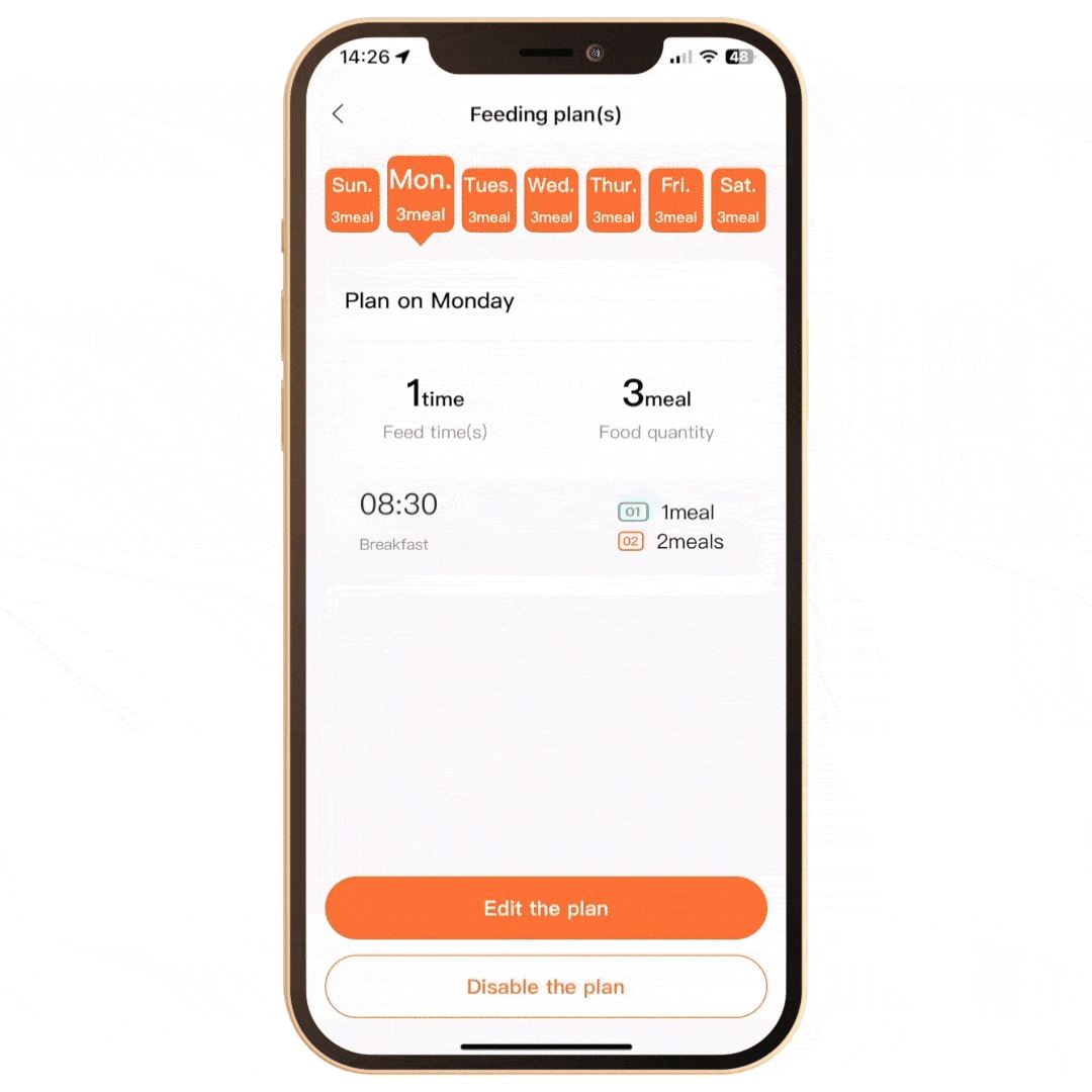 Personalizati planurile de alimentatie respective in APPCu rezervoarele duble, puteti crea amestecuri personalizate pentru a amesteca un procent de alimente din rezervorul din stanga cu un procent de alimente din dreapta. Sau il puteti seta sa distribuie alimente doar dintr-unul dintre rezervoare. Controlul precis al portiilor (pana la 10 portii pe masa in fiecare buncar) ajuta animalele de companie sa dezvolte obiceiuri alimentare sanatoase. |