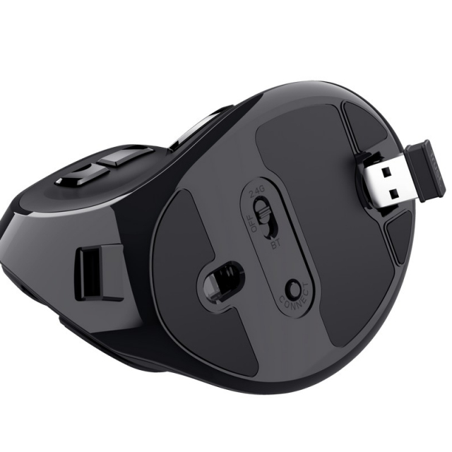 Trust VOXX Wireless Rechargeable Vertical Ergonomic Mouse, digital LED display, 2.4GHz, Bluetooth, Micro receiver USB-A male, 9 buttons (5 programmable), 1200-2400 dpi, USB, Gliding pads - teflon, Rechargeable battery, right-handed, Black