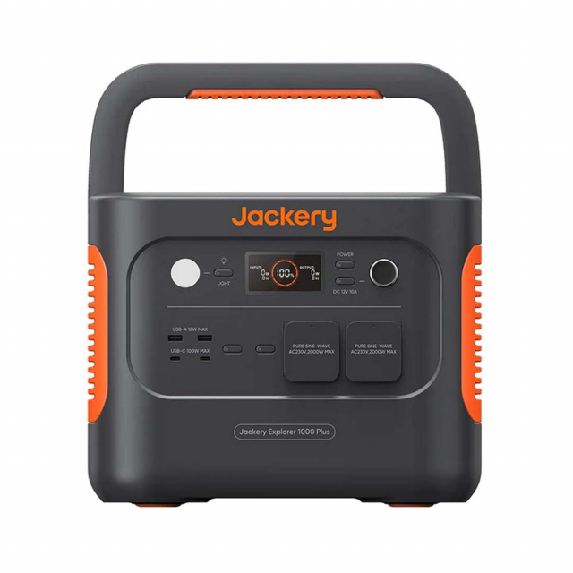 Jackery ”Explorer 1000 Plus” Portable Power Station, Capacity: 1264Wh, AC Output: 2000W, LCD, 2* USB-A, 2*USB-C, 2*AC Output, 1 Car port, DC Output, 4000 Cycles LiFePO4, Jackery APP, Weight:14.5kg, 283x260x356mm, Charge 0-100% in 1.7 Hour, Black/Orange