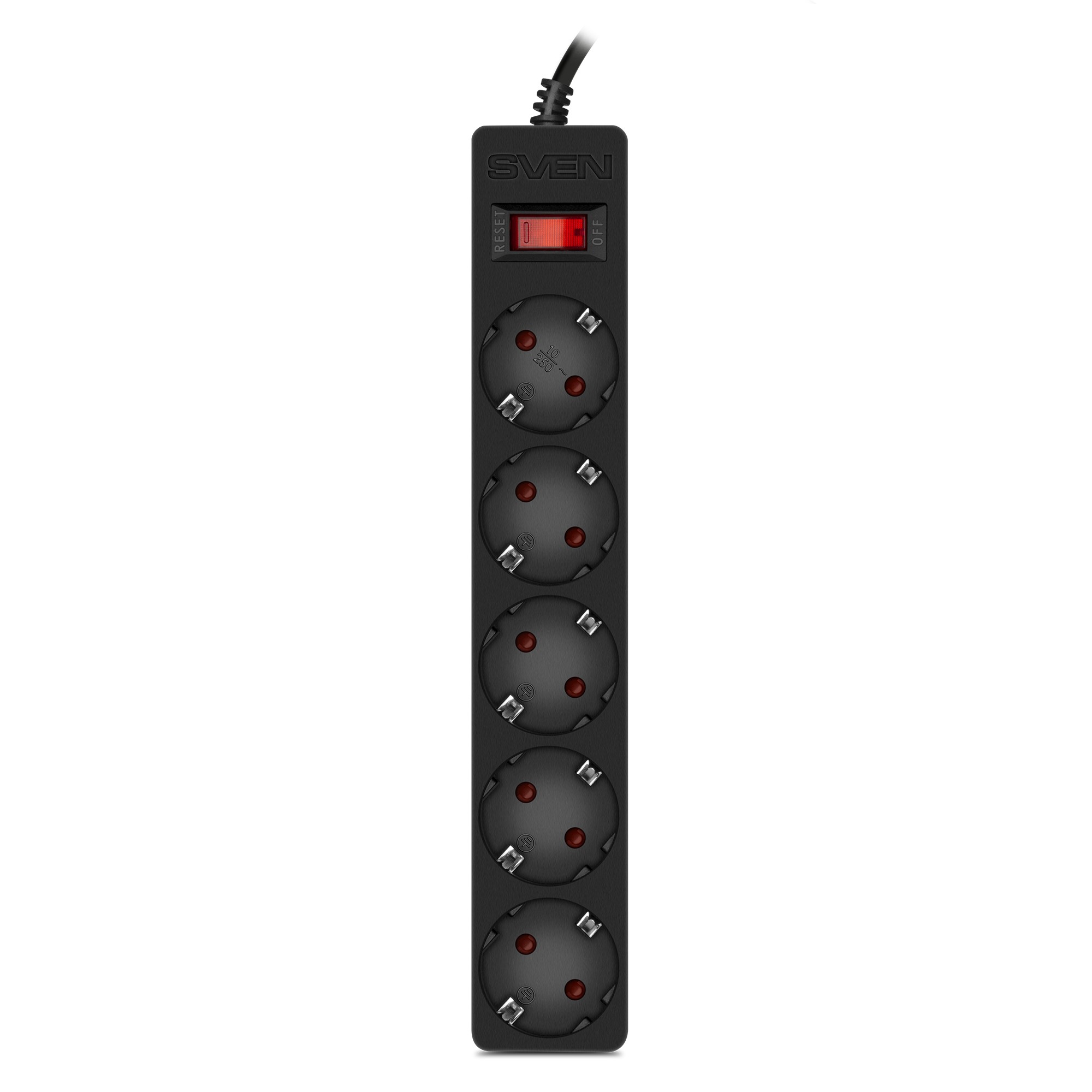 Surge Protector SVEN SF-05E, 5 Sockets, Children protection, 1m, Black