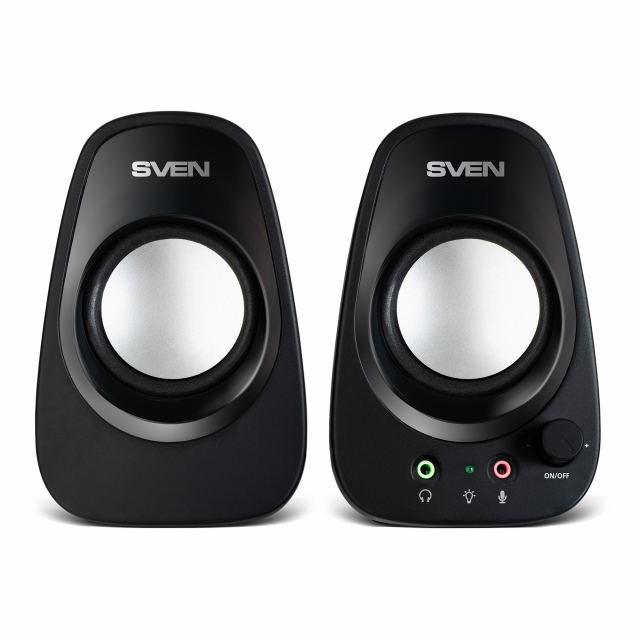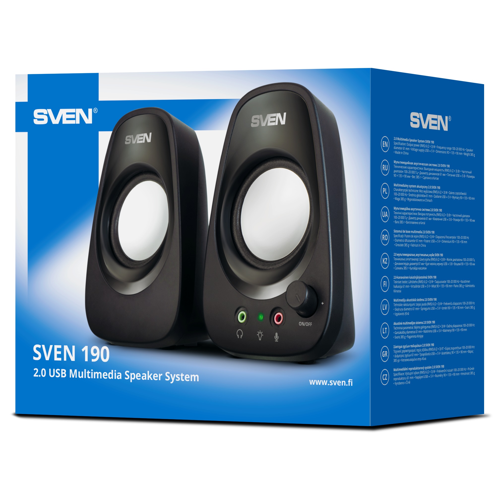 SVEN 190 Black (USB), 2.0 / 2x3W RMS, USB power supply, Headphones and microphone inputs, Rotary volume control knob on the front panel