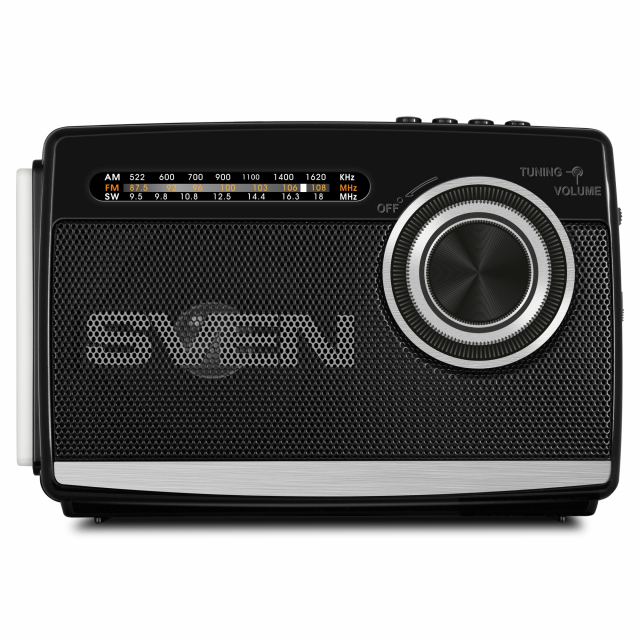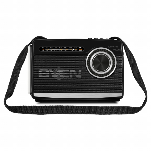 SVEN SRP-155 Black, Bluetooth, FM/AM/SW Radio, 3W RMS, built-in audio files player from USB-fash, microSD card storage devices, telescopic swivel antenna, built-in battery 1200mAh, Embedded flashlight