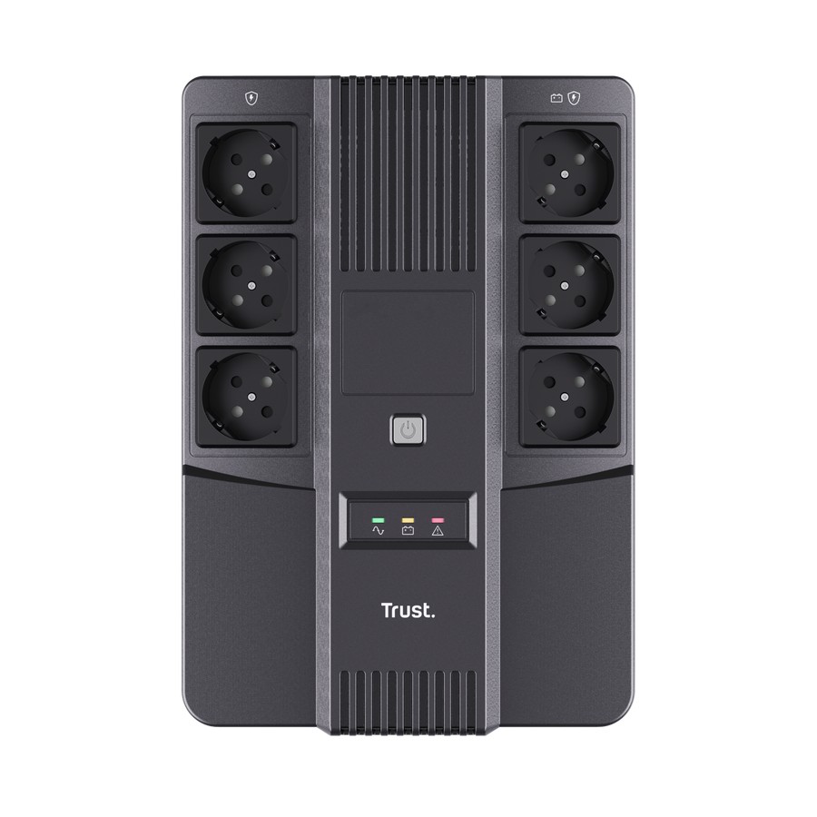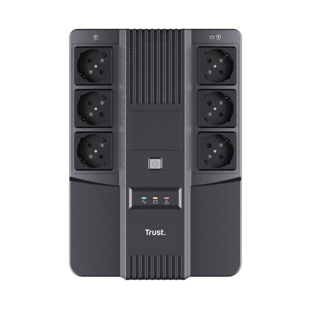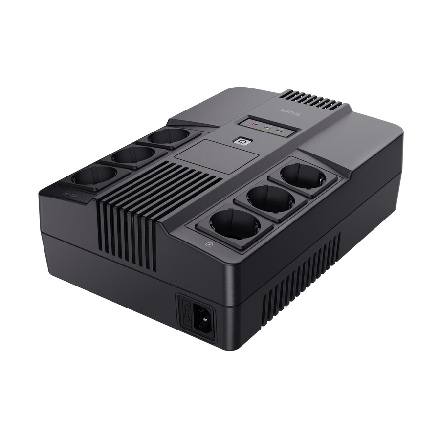 TRUST Back-UPS Maxxon 800VA/360W, AVR, 6 x CEE 7/7 Schuko (3 Battery Backup + all Surge Protected), LED indicators, black