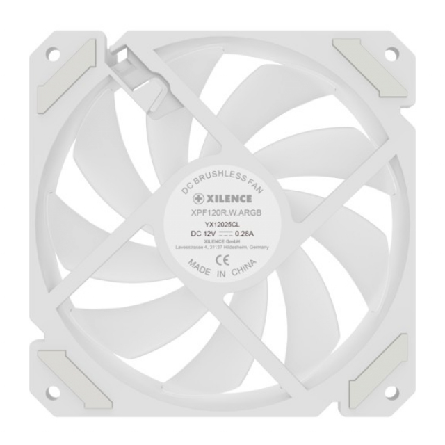 120mm Case Fan - XILENCE Performance A+ Series ”XPF120R.ARGB” REVERSE ARGB LED PWM Fan: 120x120x25mm, 600~1500rpm, <18~29dBa, 63.53CFM, PWM, hydro bearing, 4 pin + ARGB 3 Pin M/B, White