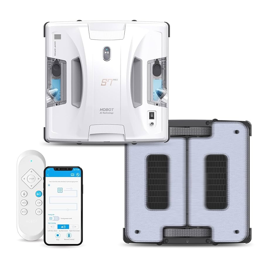 HOBOT Window Cleaning Robot S7 Pro, Dual Mop Polish, Dual Ultrasonic Water Spray, AI Smart Route Plan for Through Cleaning, UPS anti-drop up to 20min, Long Power Cord (4m), Ultra-thin design, Remote control + Control via APP, Safety rope