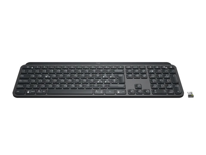 Logitech Wireless MX Keys Advanced for Business | Gen 2, Logi Bolt USB Receiver, Bluetooth Low Energy (BLE): 5.0+, USB-C rechargeable Li-Po (1500 mAh), Graphite, US International (Qwerty)