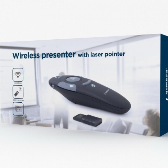 Gembird WP-L-11 Wireless presenter with laser pointer, Wireless 2.4 GHz, Power supply: 1 x AAA battery, up to 10 m, Net weight: 64 g