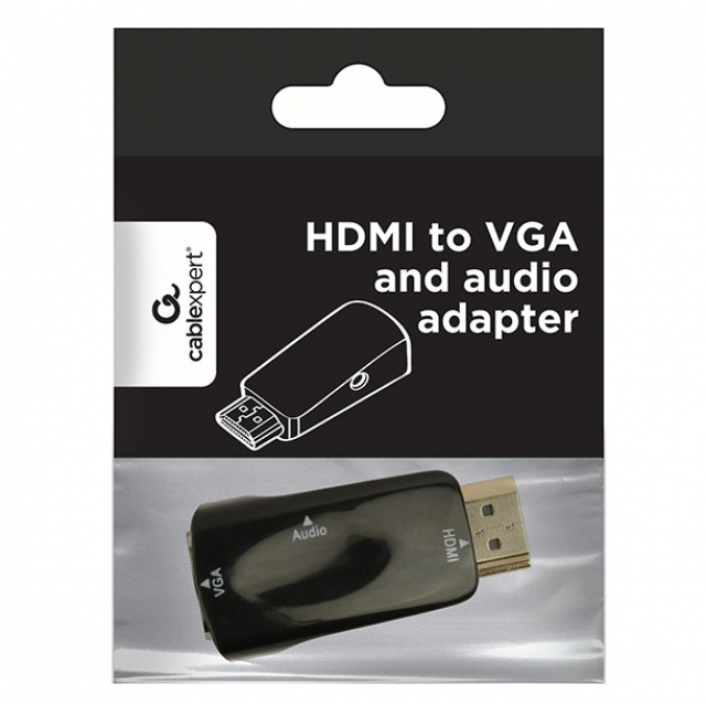 Adapter VGA-HDMI - Gembird A-VGA-HDMI-02, VGA to HDMI+ VGA adapter cable, 0.15 m, black