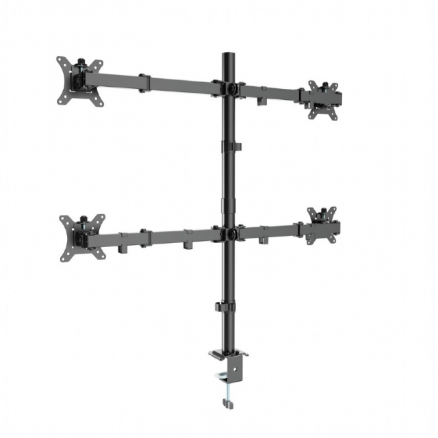 Arm for 4 monitors 13”-32” Gembird MA-D4-01, Adjustable desk 4-display mounting arm (rotate, tilt, swivel), up to 10 kg per screen, VESA 75/100, Cable management, black