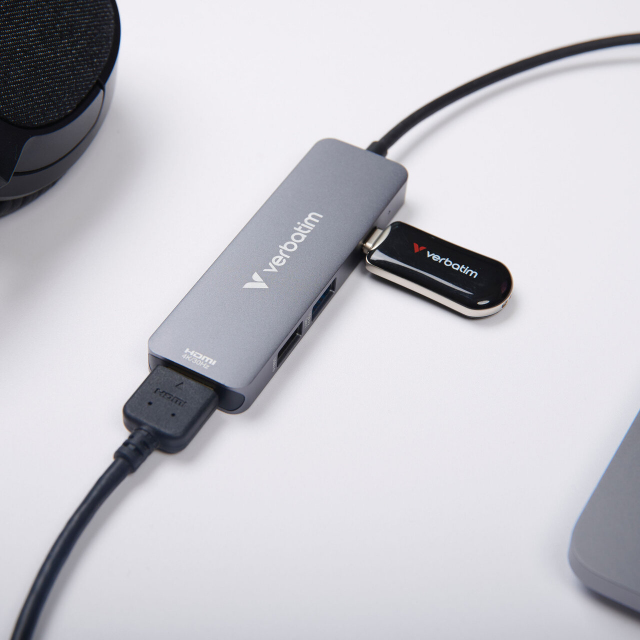 Verbatim USB-C Essentials Multiport Hub, 4 ports: HDMI (up to 4K/30Hz), USB-C PD (up to 100W), USB-A 3.2 Gen 1, USB-A, cable 18cm, 51g