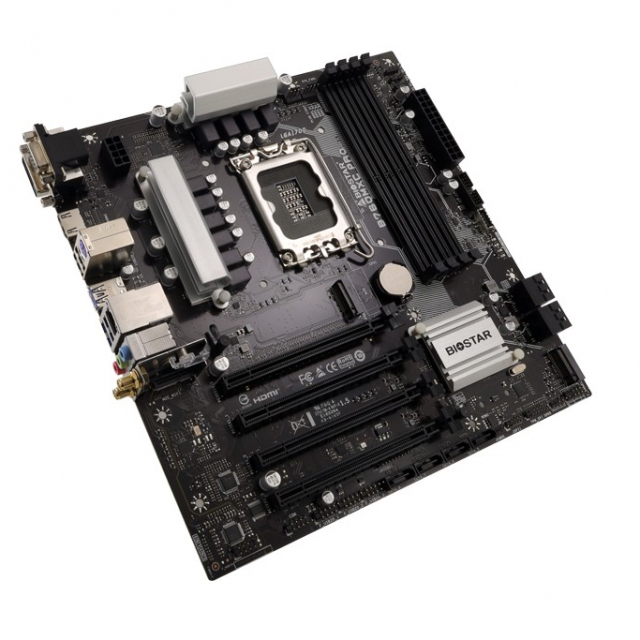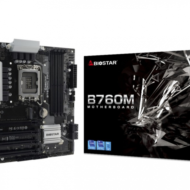 BIOSTAR B760MXC PRO, Socket 1700, Intel® B760 (14/13/12th Gen CPU), CPU graphics, VGA, DVI, HDMI, Dual 4xDDR5-6000, 4xPCIe X16 4.0, 8xSATA3, 2xM.2 4.0, RAID, 1xM.2 E-key for Wi-Fi, ALC897 7.1 HDA, 2.5GbE LAN, 1xUSB-C 3.2 Gen2, 5xUSB 3.2, VIVID LED DJ RGB, mATX