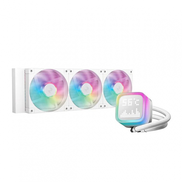 DEEPCOOL Liquid Cooler ”LP360 WH”, 360mm radiator, Anti-Leak Technology, LGA1851/1700/1200/115x & AM5/AM4, up to 300W, 3x 120mm ARGB FD12 fans: 600~2400rpm, <38.71dBA, 72.04CFM, 4-pin PWM, Hydro Bearing, 5 PRO Pump: 3400rpm, 3-phase, 6-slot, 4-pole motor, Dot-matrix Screen, White