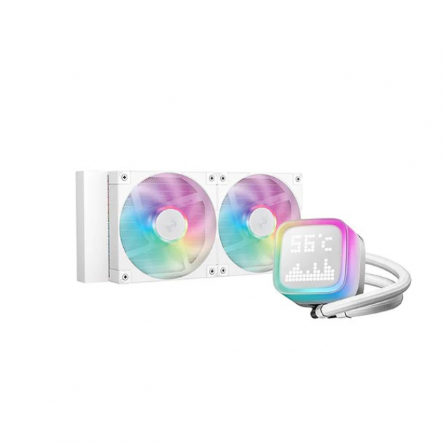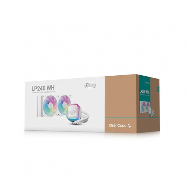 DEEPCOOL Liquid Cooler ”LP240 WH”, 240mm radiator, Anti-Leak Technology, LGA1851/1700/1200/115x & AM5/AM4, up to 280W, 2x 120mm ARGB FD12 fans: 600~2400rpm, <38.71dBA, 72.04CFM, 4-pin PWM, Hydro Bearing, 5 PRO Pump: 3400rpm, 3-phase, 6-slot, 4-pole motor, Dot-matrix Screen, White