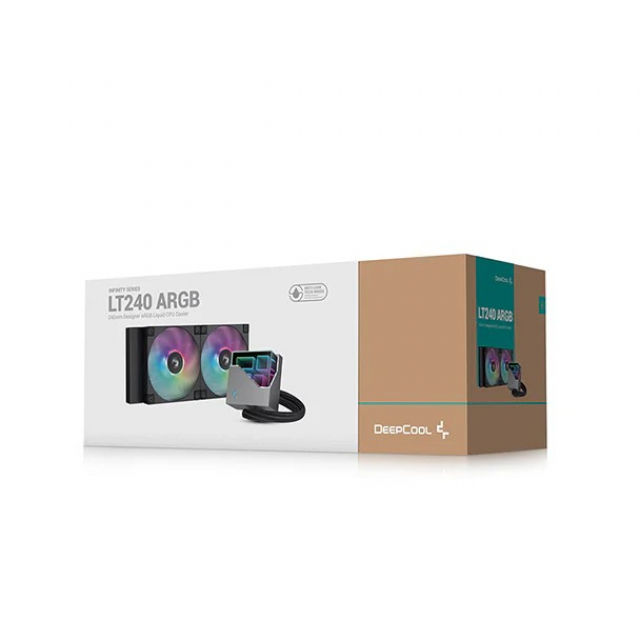 DEEPCOOL Liquid Cooler ”LT240 ARGB”, 240mm radiator, Anti-Leak Technology, LGA1851/1700/1200/1151 & AM5/AM4, up to 280W, 2x 120mm ARGB FD12 fans: 600~2400rpm, <38.71dBA, 72.04CFM, 4-pin PWM, Hydro Bearing, 5 PRO Pump: 3400rpm, 3-phase, 6-slot, 4-pole motor, Infinity Mirrow top cap, Black