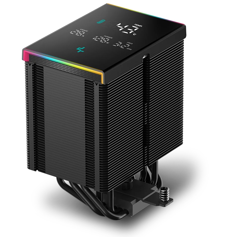 DEEPCOOL Cooler ”AK500 DIGITAL PRO”, Intel Socket LGA2066/2011/1851/1700/1200/115x & AMD AM5/AM4, up to 240W, 1x FDB FT12 SE fan: 120x120x25mm, 500~1750 RPM±10%, <25 dB(A), 60.89 CFM, 4-pin PWM, Fluid Dynamic Bearing, 5x 6mm Cooper heatpipes, magnetic status display, ARGB LED strips, Black