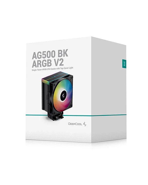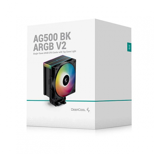 DEEPCOOL Cooler ”AG500 BK ARGB V2”, Intel Socket Intel LGA1851/1700/1200/115x & AMD AM5/AM4, up to 240W, 1x ARGB PWM fan:120x120x25mm, 300~1950 RPM±10%, <29.4 dB(A), 67.88 CFM, 4-pin PWM, Hydro Bearing, ARGB top cover & translucent logo design, 5x 6mm Cooper heatpipes, Black