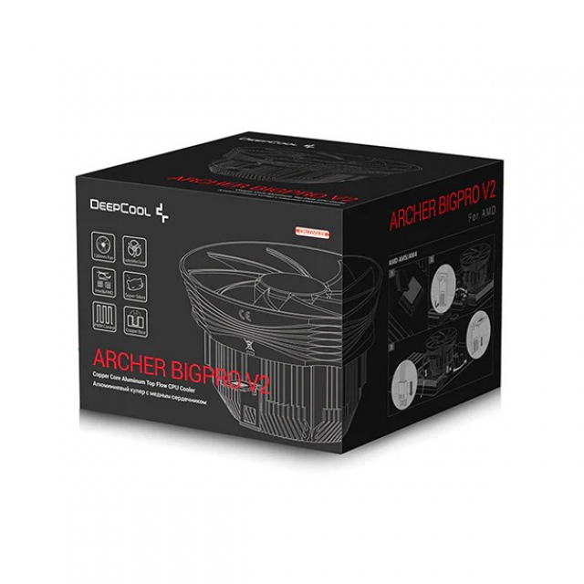 DEEPCOOL Cooler ”ARCHER BIGPRO V2”, Socket LGA1851/1700/1200/115x & AM5/AM4, up to 125W, 120х120х25mm, 900~2000 RPM±10%, <29.7 dB(A), 60.19CFM, 4-pin PWM, Hydro Bearing, Copper Base, D.A.C. (Double Airflow Channel)