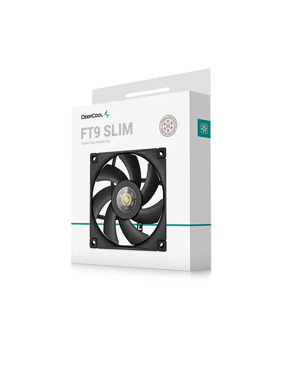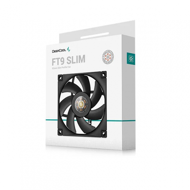 92mm Case Fan - DEEPCOOL ”FT9 SLIM”, High-performance 92mm thin-profile PWM fan, 92x92x15 mm, 500~2950 RPM±10%, 31.18 CFM, <23.2dB(A), 4-pin PWM, 3-phase 6-pole fan motor, neodymium magnets, Fluid Dynamic Bearing, white LEDs, Black