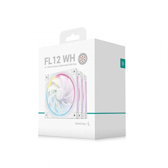120mm Case Fan - DEEPCOOL ”FL12 SE WH 3-IN-1”, 3x 120mm ARGB PWM fan, 120x120x25 mm, 400~1900 RPM±10%, 50.74 CFM, <28.67 dB(A), 4-pin PWM, long-life hydraulic bearing, anti-vibration pads, White
