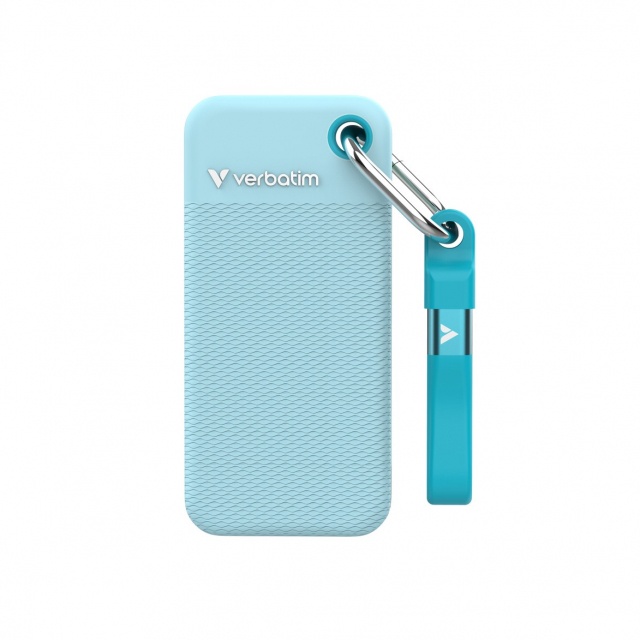 M.2 External SSD 1.0TB Verbatim Pocket Colour Edition USB 3.2 Gen 2, Polar Blue with 2 Rubber Sleeves (Black & Polar Blue), USB-C, Sequential Read/Write: up to 1000/1000 MB/s, Keyring and Cable Holder, Portable, Compact, Rugged and Perfect for travel, Ultra-lightweight, Nero Backup Software (Win)