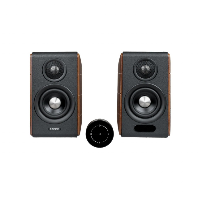 Edifier S880DB Walnut Active Hi-Fi Speaker, Hi-Res 2.0/ 88W (2x44W) RMS, Bluetooth 5.3, LDAC, Titanium-laminate dome treble driver, Audio in: two digital (Optical, Coaxial) & two analog (RCA),USB-C, remote control, OLED display, ConneX App, wooden