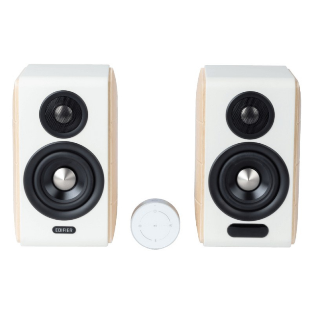 Edifier S880DB White Active Hi-Fi Speaker, Hi-Res 2.0/ 88W (2x44W) RMS, Bluetooth 5.3, LDAC, Titanium-laminate dome treble driver, Audio in: two digital (Optical, Coaxial) & two analog (RCA),USB-C, remote control, OLED display, ConneX App, wooden
