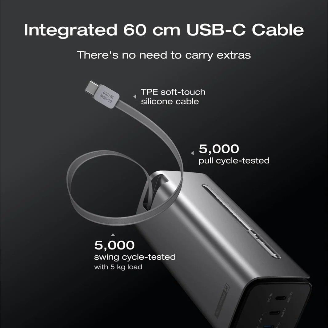 EcoFlow Rapid Pro 20K Power Bank, 20.000mAh (72Wh) Air-travel-friendly, Fast charging of multiple devices: Total output (4 ports): 230W, 1* 100W USB-C port, 2 *65W USB-C, Smart LCD Display, 100W Built-in Cable 60cm, Ecoflow App, 145 x 55 x 56mm, 564g