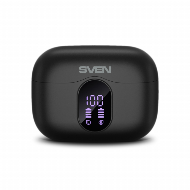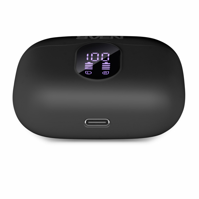 SVEN E-315B, TWS Wireless In-ear stereo earbuds with microphone, Bluetooth 5.4, ANC, ENC, Transparency mode, Game mode, Smart Life app, LED display, ”Find Me” function, 26 hours battery life with the charging case, Sensor buttons, Black