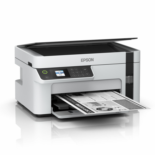 MFD CISS Epson EcoTank M2120 white, Mono Printer/Scanner/Copier, Wi-Fi, A4, Print 1440x720dpi, 3pl, up to 15000/m, Scan 1200x2400 dpi, ISO/IEC 15 ipm, 64-256 г/м2, LCD 3.7 cm, Wi-Fi Direct, USB 2.0, ink tank: C13T03P14A Black T03P1: 5000 pages